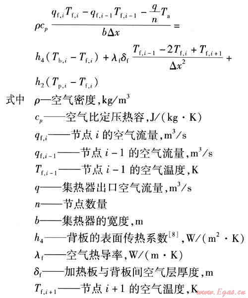 對于吸熱板與背板之間的流體,節(jié)點i的能量平衡方程為: