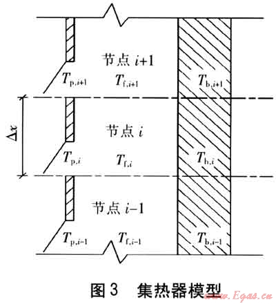 集熱器模型見圖3,基于有限差分的數(shù)值解法,將集熱器沿x方向分成n個節(jié)點。