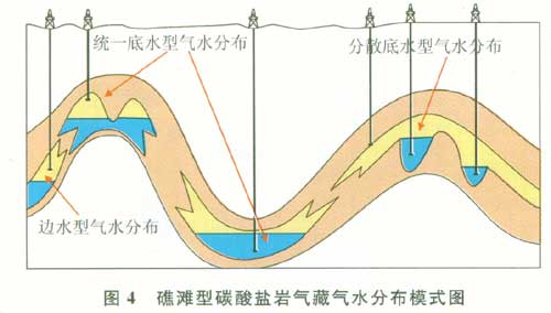 針對這些問題,綜合巖性、電性、物性及微觀孔隙結構的研究,在儲層發(fā)育規(guī)律研究的基礎上研究氣藏氣水分布特征,弄清氣水分布控制因素,建立氣水分布模式有利于制定合理的碳酸鹽巖氣藏開發(fā)方式,確定礁灘型碳酸鹽巖氣藏高效開發(fā)技術對策,保證這一類型氣藏的高效開發(fā)。