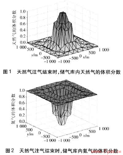 然氣的混合問題,建立了氣水兩相滲流模型及氣體擴散模型,建立了二維平面有限元模型,采用部分離散方法對數(shù)學模型進行了有限元方程的推導。應(yīng)用建立的模型進行含水層型地下儲氣庫以惰性氣體作為部分蟄層氣的建庫過程和工業(yè)運行的數(shù)值模擬。通過對單井儲氣庫注采進行數(shù)值模擬,分析了在注采過程中對采出氣質(zhì)量影響較大的參數(shù)。