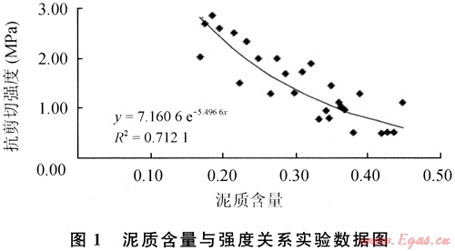 實(shí)驗(yàn)樣品的抗剪切強(qiáng)度與含水飽和度(泥質(zhì)含量30%)回歸關(guān)系式(圖2)為: