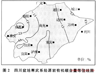 盆地內(nèi)寒武系有機(jī)碳含量一般在0.2%~9.98%之間,159個樣品的有機(jī)碳含量平均值為0.97%(圖2)。有機(jī)質(zhì)成分以腐泥組為主(占95%以上),無定形,掃描電鏡下為松軟的絮狀體,干酪根碳同位素一般為-27‰~-31‰,氯仿瀝青“A”中飽和烴含量高(40%~60%),芳烴含量低(11%~15%),瀝青質(zhì)含量低(3%~15%),飽芳比高(3~5)。表明原始有機(jī)物主要為盆地相中的低等水生生物,按Tissot等(1984)的分類屬生烴能力極強(qiáng)的腐泥型于酪根。