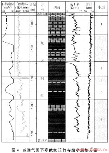 容積法估算中,依據(jù)威遠氣田區(qū)筇竹寺組巖性和電性特征(圖4),在圖3基礎上,將威遠氣田區(qū)筇竹寺組劃分為6個小層(見表4)。