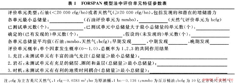 福斯潘模型(FORSPAN)法是USGS在1999年為連續(xù)型油氣藏資源評價而提出的一種評價方法。該方法以連續(xù)型油氣藏的每一個含油氣單位為對象進行資源評價,即假設每個單元都有油氣生產(chǎn)能力,但各單元間汗油氣性(包括經(jīng)濟性)可以相差很大,以概率形式對每個單元的資源潛力作出預測。以往也用體積法對連續(xù)型油氣藏資源潛力作過評價。在體積法中,原始資源量估算常用的參數(shù)主要是一些基本地質參數(shù)(如面積、厚度、孔隙度等),這些參數(shù)有很大的不確定性,且各單元間關系密切、缺乏獨立性。因此,參數(shù)選取及標準確定較困難。福斯潘(FORSPAN)法建立在已有開發(fā)數(shù)據(jù)基礎上(圖2),估算結果為未開發(fā)原始資源量。因此,該方法適合于已開發(fā)單元的剩余資源潛力預測。已有的鉆井資料主要用于儲層參數(shù)(如厚度、含水飽和度、孔隙度、滲透率)的綜合模擬、權重系數(shù)的確定、最終儲量和采收率的估算。如果缺乏足夠的鉆井和生產(chǎn)數(shù)據(jù),評價可依賴各參數(shù)的類比取值。
