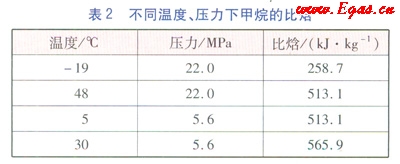 不同溫度、壓力下甲烷的比焓見表2。