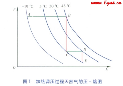 由于CNG調(diào)壓裝置均由設(shè)備廠商成套提供,工程設(shè)計(jì)過程中只需滿足加熱裝置的熱源保證,建議工程設(shè)計(jì)人員在設(shè)備廠商提供的熱負(fù)荷基礎(chǔ)上通過查狀態(tài)圖法進(jìn)一步核算,并考慮一定的余量。