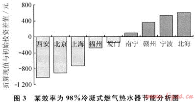 2005年起,國內部分熱水器廠家開始生產(chǎn)銷售冷凝式熱水器,其中部分產(chǎn)品的熱工性能已達到或超過國外同類產(chǎn)品?,F(xiàn)采用凈現(xiàn)值法對冷凝式熱水器的節(jié)能情況做一簡略分析。