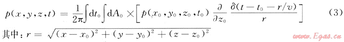 式中:p(x,y,z,t)為閉合曲面S0上某個觀測點R(x,y,z)處的波場函數(shù)值;p(x0,y0,z0,t0)為閉合曲面S0上某個觀測點R0(z0,y0,z0)處的波場函數(shù)值;n為閉合曲面的外法線方向;G為格林函數(shù)。