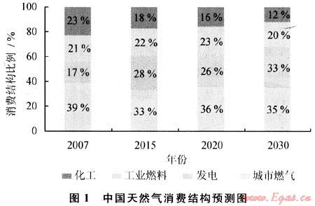 綜合國(guó)內(nèi)外相關(guān)機(jī)構(gòu)預(yù)測(cè)分析,預(yù)計(jì)2010年和2015年,中國(guó)天然氣消費(fèi)、需求量將分別達(dá)到1500×108m3和2400×108m3,供應(yīng)缺口較大。到2020年和2030年,預(yù)計(jì)如果中國(guó)天然氣在能源結(jié)構(gòu)中的比重將從目前的3.4%提高到8.0%和9.5%,天然氣需求將分別達(dá)到2800×108m3和3900×108m3。同時(shí),天然氣利用結(jié)構(gòu)將進(jìn)一步得到優(yōu)化,天然氣附加值將會(huì)提升,主要表現(xiàn)在: