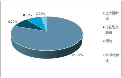 我國(guó)的進(jìn)口管道氣主要來(lái)自于土庫(kù)曼斯坦, 2017年我國(guó)從土庫(kù)曼斯坦共進(jìn)口管道氣 2451 萬(wàn)噸(約合 328 億立方米),占去年管道氣進(jìn)口總量的 80.5%,其次烏茲別克斯坦、緬甸、哈薩克斯坦也是我國(guó)的管道氣進(jìn)口國(guó)