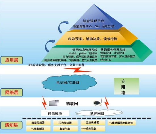 智慧城市燃?xì)庀到y(tǒng)主要由十大應(yīng)用系統(tǒng)共21個(gè)子系統(tǒng)組成,即生產(chǎn)領(lǐng)域的管網(wǎng)信息管理系統(tǒng);服務(wù)領(lǐng)域的營(yíng)銷服務(wù)管理系統(tǒng);領(lǐng)導(dǎo)決策支持的應(yīng)急預(yù)案管理系統(tǒng)、輔助決策管理系統(tǒng)、績(jī)效考核管理系統(tǒng);統(tǒng)一指揮調(diào)度的智能指揮中心系統(tǒng);自動(dòng)化辦公的OA系統(tǒng)和系統(tǒng)管理支撐子系統(tǒng)。