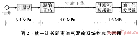 2) 充分利用鹽下油田油井壓力高、產(chǎn)出原油凝固點低、黏度低的特點,實行從井口到油氣處理廠全程長距離不加熱、自壓油氣混輸。