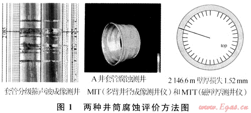 腐蝕評價方法主要有兩種:MIT和MTT測井、套管分級箍聲波成像測井(圖1)。