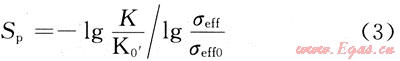 從前面的分析得知低滲透儲層巖石在覆壓實驗中發(fā)生的不是理想線彈性變形,因而按指數(shù)式擬合實驗數(shù)據(jù)相關性不是最佳。為了能更好地利用實驗數(shù)據(jù),并將其與油氣藏工程相結合,筆者提出一種新的應力敏感評價指標表征低滲透巖樣滲透率與有效覆壓的關系[10~11]: