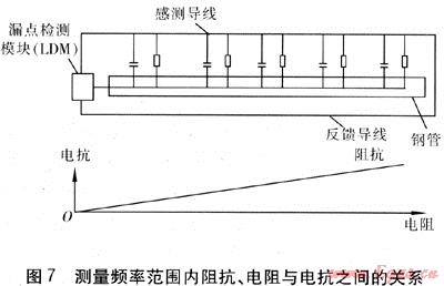 感測導(dǎo)線用于測量阻抗,且與反饋導(dǎo)線形成回路,因此感測導(dǎo)線與反饋導(dǎo)線必須在被測管段的末端連接在一起形成一個回路。這樣,漏點檢測系統(tǒng)通過檢測感測導(dǎo)線與反饋導(dǎo)線之間的電阻,以及感測導(dǎo)線與管道之間的阻抗判斷管道是否泄漏,依此監(jiān)測管道和保溫層之間的濕度,經(jīng)軟件處理確定泄漏度和漏點位置。
