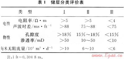 利用三維地震、巖心、區(qū)域?qū)有騽澐值荣Y料,結(jié)合地質(zhì)、鉆井、測(cè)井資料,確定了氣藏基本骨架;采用Strata井約束反演技術(shù),落實(shí)了儲(chǔ)層砂體的空間展布規(guī)律;對(duì)儲(chǔ)層進(jìn)行了分類(lèi)評(píng)價(jià)(表1),為布井、鉆井和氣井合理配產(chǎn)奠定了基礎(chǔ)[3]。