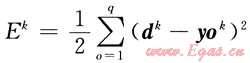 4) 輸出層輸出向量yok與期望輸出向量dk結合,計算誤差函數(shù)對輸出層的各節(jié)點的偏導數(shù)δok:
