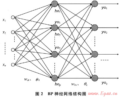 以圖2所示3層神經(jīng)網(wǎng)絡結構為算法構建依據(jù),按照如下步驟[7~8]進行計算,實現(xiàn)網(wǎng)絡的建立: