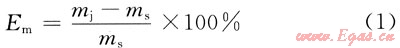 式中mj為檢定設備顯示的質量流量示值;ms為氣體流量計量標準裝置給出的實際質量示值。