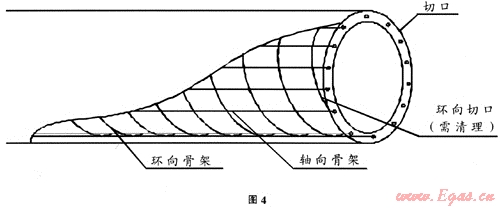 因復(fù)合管的特殊制造工藝及結(jié)構(gòu)形式,作為骨架的鋼絲沿管周向和軸向形成螺旋網(wǎng)狀,斷管后,軸向骨架被垂直切斷,螺旋狀骨架有局部區(qū)域被剖切,這樣易形成毛刺,外翻等,因而需用小刀、鉗子、取子等工具將毛刺切斷取出(如圖4)。