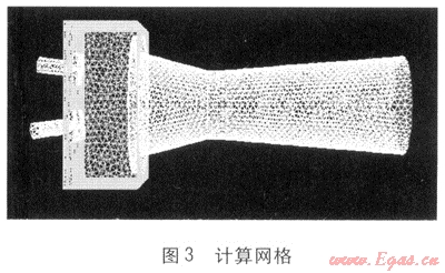 首先利用Pro/E軟件繪制引射器幾何模型,然后將其導(dǎo)入Fluent前處理軟件Gambit中生成計(jì)算網(wǎng)格,見圖3。