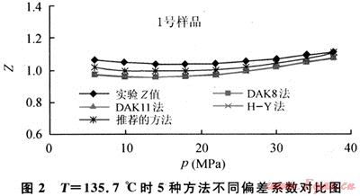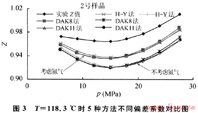 3) 盡管進行了CO2和N2的校正,但對于高含CO2的流體用常規(guī)(例如DAK8、DAK11、H-Y方法)的偏差系數(shù)經(jīng)驗公式來計算時偏差還是比較大的。
