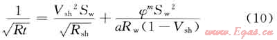 1) 根據(jù)測(cè)井原理,利用孔隙度和電阻率曲線確定含水飽和度(西門杜公式),其公式為: