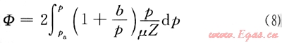 式中Φe為邊界壓力對(duì)應(yīng)的擬壓力值;Φw為井底壓力對(duì)應(yīng)的擬壓力值。