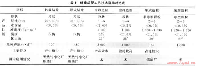 由硫磺成型工藝比較(表1)可見,凈化廠若采用單列產(chǎn)能500~1000t/a的硫磺成型工藝,需10余臺硫磺成型裝置,占地面積大,運(yùn)行及維護(hù)成本高。單列產(chǎn)能2000t/d以上工藝相互對比,空冷造粒工藝能耗高,硫磺脆度大,在運(yùn)輸過程中易形成粉塵,帶來火災(zāi)、爆炸隱患;而經(jīng)水冷造粒成型的硫磺,硬度大,含水,不易產(chǎn)生粉塵。因此,凈化廠采用國內(nèi)首套濕法硫磺成型工藝,建成4套DEVC0濕法成型機(jī),產(chǎn)能360t/h,硫磺適宜的含水量降低了生產(chǎn)及裝車過程的粉塵,安全性能高。