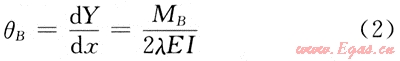 ;EI為彎曲剛度;K為彈性地基的彈簧常數(shù);MB為B點(diǎn)彎矩。B處轉(zhuǎn)角可用下式計(jì)算: