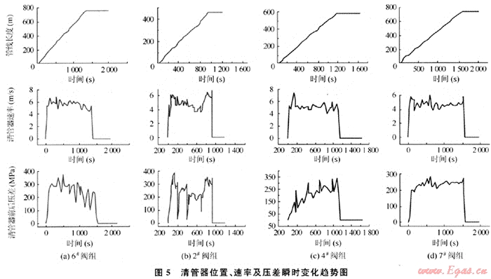 2.3.3清管器瞬時位置、速率及壓降變化規(guī)律