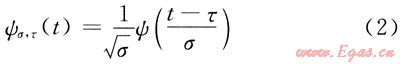 當(dāng)σ越大時,ψσ,τ(t)伸展越寬、波形越肥胖、主頻越低。當(dāng)σ越小,ψσ,τ(t)在時間軸上壓縮越強(qiáng)、波形越窄、主頻越高。ψσ,τ(t)是由小波母函數(shù)ψ(t)∈L2(R)在時間軸上經(jīng)伸縮與平移得到的[9],即
