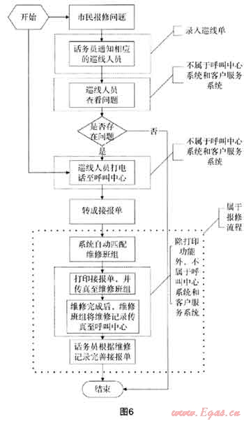 步驟二:該報修班組的維修工作人員上門維修后,工單通過傳真?zhèn)骰亟o呼叫中心;