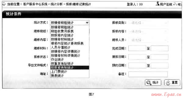 對報修記錄、咨詢記錄、投訴記錄、維修記錄、回訪記錄的統(tǒng)計。