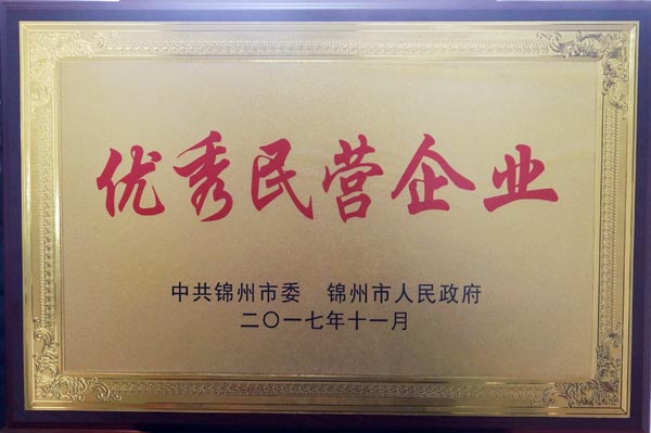 我公司被授予“錦州市優(yōu)秀民營企業(yè)”榮譽稱號