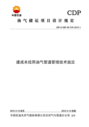 本規(guī)定明確了工程完工后六個月內(nèi)不能投產(chǎn)的油氣管道管理技術要求。